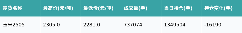 南方财经2月17日电,南财金融终端盘后期货数据显示,大连商品交易所的玉米主力合约收跌0.74%,收盘报2288.0元/吨,日内资金流出高达8053.94万元,显示市场参与者对玉米期货短期走势持谨慎态度。玉米作为重要的农产品期货品种,其价格波动一直备受市场关注。以下图表详细展示了相关指标: