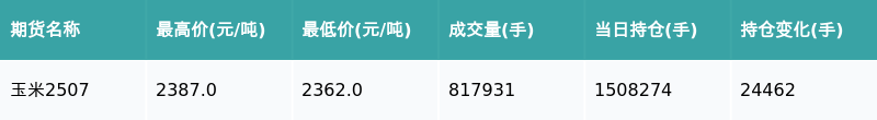 5月7日,大连商品交易所玉米主力合约收涨0.25%,报价2369.0元/吨。但日内资金流出6.12亿元,市场趋势需投资者密切关注。