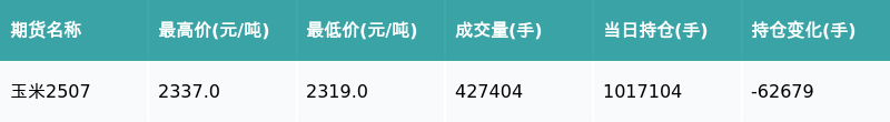 南财智讯6月4日电,南财金融终端盘后期货数据显示,大连商品交易所的玉米主力合约6月4日收涨0.3%,收盘报价2333.0元/吨,日内资金流出达到1.93亿元。这一动态反映了玉米期货市场的最新趋势,为投资者提供了重要参考。以下是详细的相关指标表格: