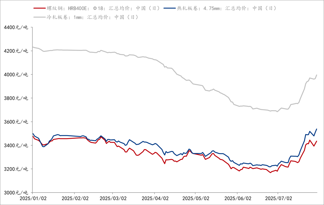 2025年以来3种钢材价格走势,数据来源:上海钢联