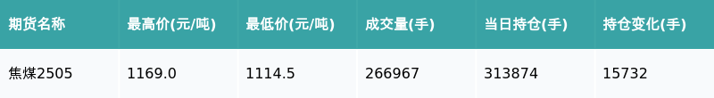 以下表格详细列出了焦煤期货主力合约及其他相关期货品种的关键交易数据,为投资者提供全面的市场参考: