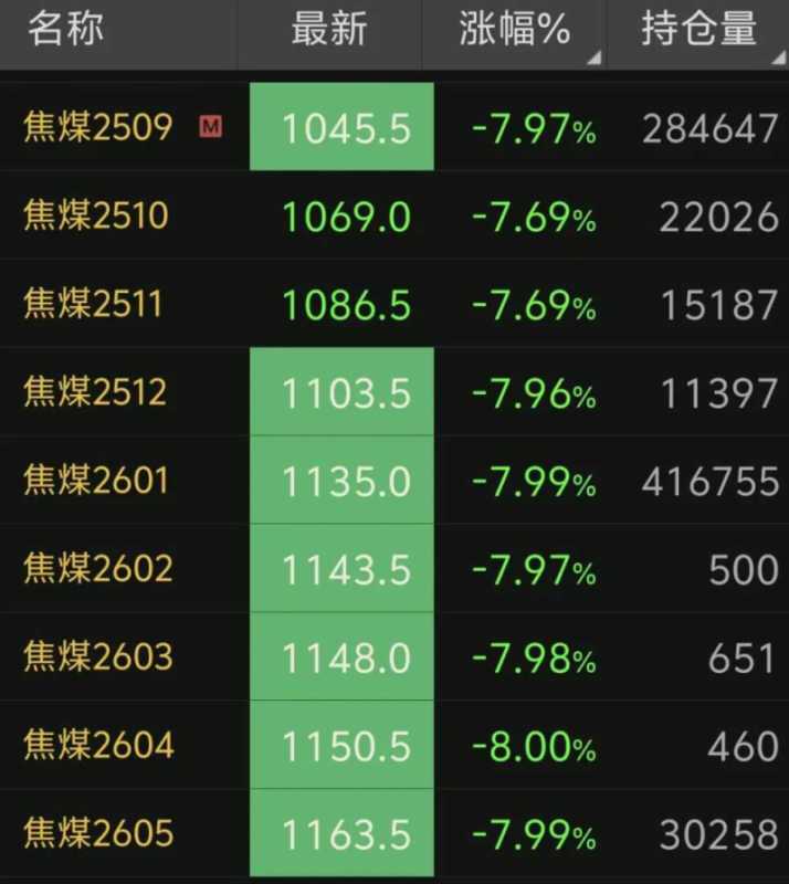7月31日,黑色及建材板块继续大跌,下午盘中,焦煤期货多合约跌停,硅铁和玻璃期货主力合约也触及跌停。