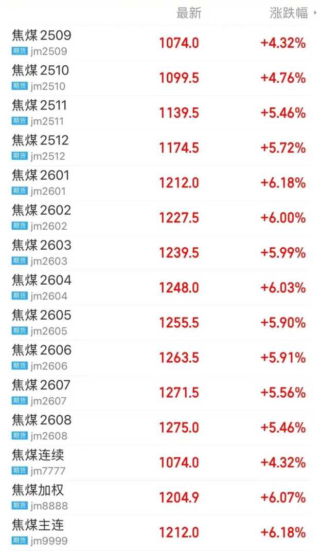 周五夜盘时段,焦煤期货多个合约大涨,截至夜盘收盘,主力合约涨6.18%,重回1200元/吨大关,期货交易(期货关键词)活跃度提升。