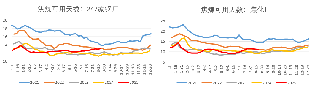 虽然近期钢材累库趋势加快,但主要还是废钢增量较多,铁水依旧保持日均铁水240万吨附近,对煤焦原料需求形成稳定支撑,而钢厂高炉利润整体表现偏强,后续来看,金九银十期间铁水产量大概率能维持在240以上,焦煤需求有保障。