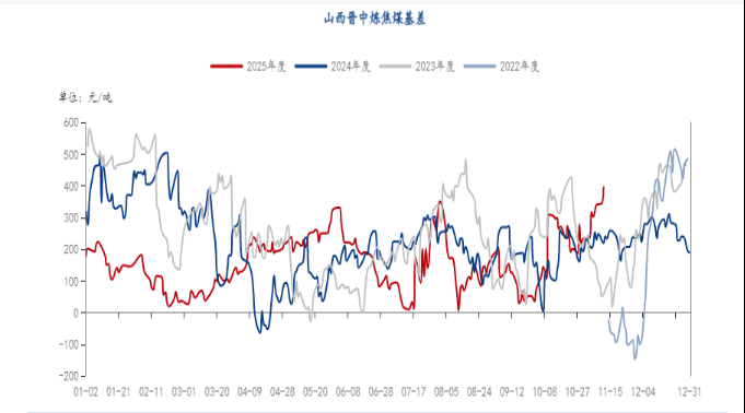 10月底以来,山西晋中炼焦煤基差快速拉升,基差环比变动超10%,这一显著变化引发市场关注。随着预期走弱,焦煤期价下跌,而现货价格受强现实支撑,仍维持偏强态势,盘面贴水现货,基差逐渐拉大,市场波动加剧。
