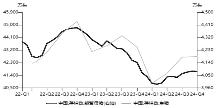 图为能繁母猪存栏量及生猪存栏量,直观展示了市场供应情况。