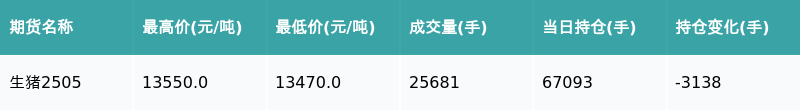 南方财经3月27日电,南财金融终端盘后期货数据显示,大连商品交易所的生猪主力合约收涨0.22%,收盘报13515.0元/吨,日内资金流出1.12亿元。生猪期货市场今日表现平稳,投资者需密切关注生猪产能恢复情况及市场需求变化。以下附上详细的相关指标表格: