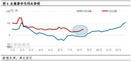 另一方面,从下游屠宰来看,9月份终端需求或小幅好转,而在9月末及10月初受国庆及中秋备货影响,屠宰量有进一步增加空间。10月份屠宰量或进入较为平稳的阶段,对屠宰毛利的支撑力度较为有限。11月开始,南方或陆续进入腌腊季,到12月份时达到腌腊高峰期,对白条需求及价格均有较强支撑效果,屠宰毛利或提升。综合来看,卓创资讯预计9-12月份屠宰毛利或以增为主,并出现除春节外的年度最高点。