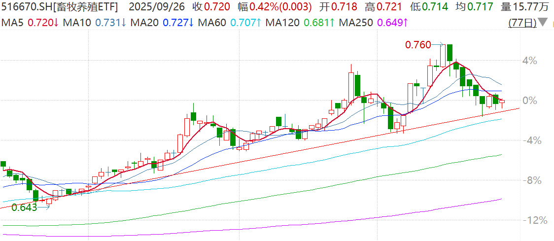 二级市场则在近期回调后今日反弹,立华股份、温氏股份、海大集团涨超1%,巨星农牧、圣农发展、牧原股份小幅上涨。畜牧养殖ETF(516670)涨0.56%,近10个交易日获资金净流入合计1.17亿元,市场资金流向显现积极信号。