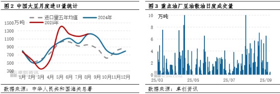 具体来看,原料充裕和压榨企业的高开工,保证了豆油的供应整体趋松。海关总署数据显示,2025年1-8月中国大豆进口量为7331.2万吨,同比增加283.32万吨,增幅4.02%;其中8月大豆进口量1227.9万吨,同比增加13.49万吨,增幅1.11%,连续第四个月再创月度历史同期新高。究其原因,二季度后美豆进口关税提高,以及中美贸易问题的不确定性,令国内压榨企业在南美大豆供应季内集中采购,以应对四季度及后期美豆供应季可能出现的大豆原料缺口问题(SEO关键词2)。