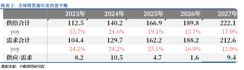 综合近期国内外减产信息,按已披露停产风险重新测算,全年过剩量由8万吨收窄至5万吨LCE:供给(含回收)166.9万吨,同比+19.1%,较年初下调3万吨;需求162.2万吨,同比+25.1%,较年初上调4万吨;2026年预期同步下调。