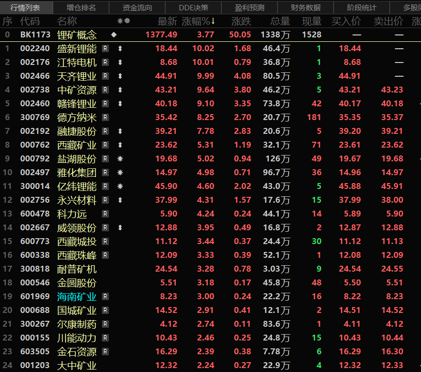 据东方财富统计,截至8月11日上午收盘,锂矿概念股盛新锂能、江特机电、天齐锂业等涨停,中矿资源、赣锋锂业、德方纳米等多股大幅上涨。