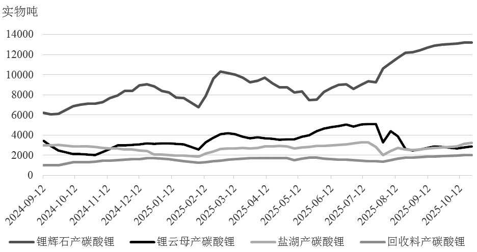 辉石提锂方面,原料供应充足,市场主要矛盾是原料供应增长与冶炼产能达峰。预计随着冶炼产能进一步扩张,辉石提锂产能也将同步增长。云母提锂方面,受原料供应限制,预计短期内云母提锂产量保持稳定。盐湖提锂方面,近期超7万吨新增产能投放,且新增产能多为DLE工艺,受气温下降的影响较小,预计短期盐湖提锂产量增长,为碳酸锂市场提供了稳定的供应。