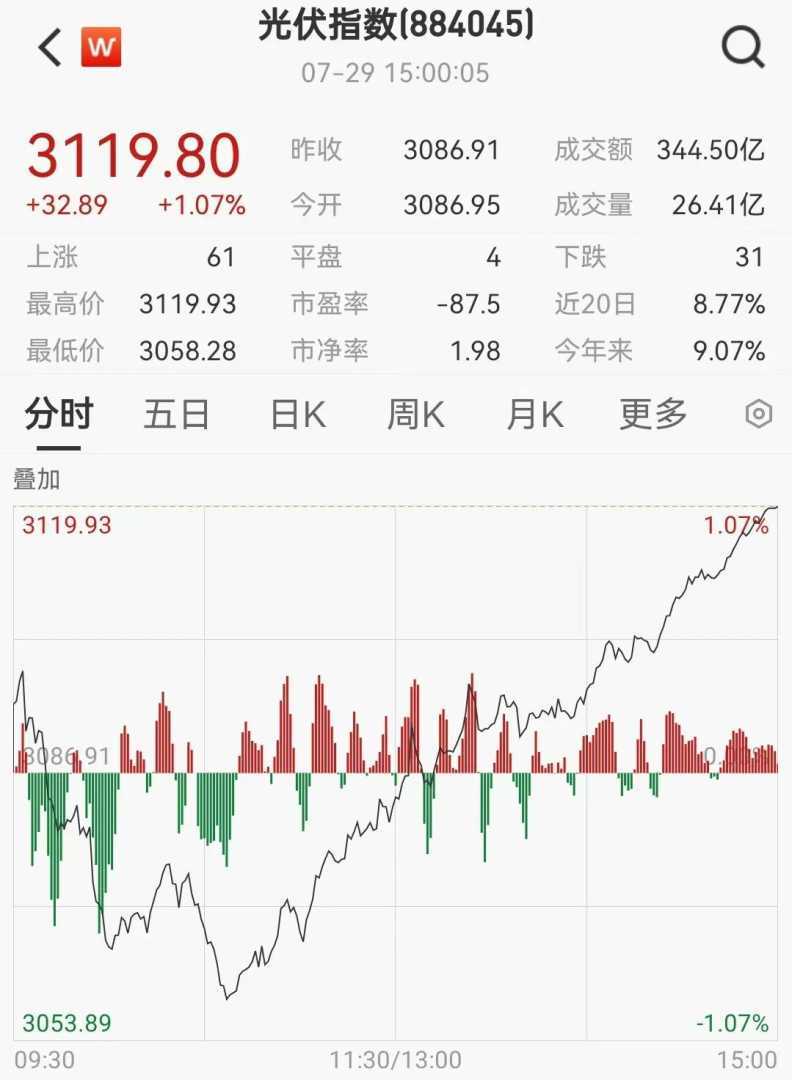 A股方面,光伏指数早上也探底回升,福斯特、禾望电器午后直线涨停,硅料企业协鑫科技、大全能源、新特能源、通威股份分别涨7.69%、5.17%、4.40%、3.45%。