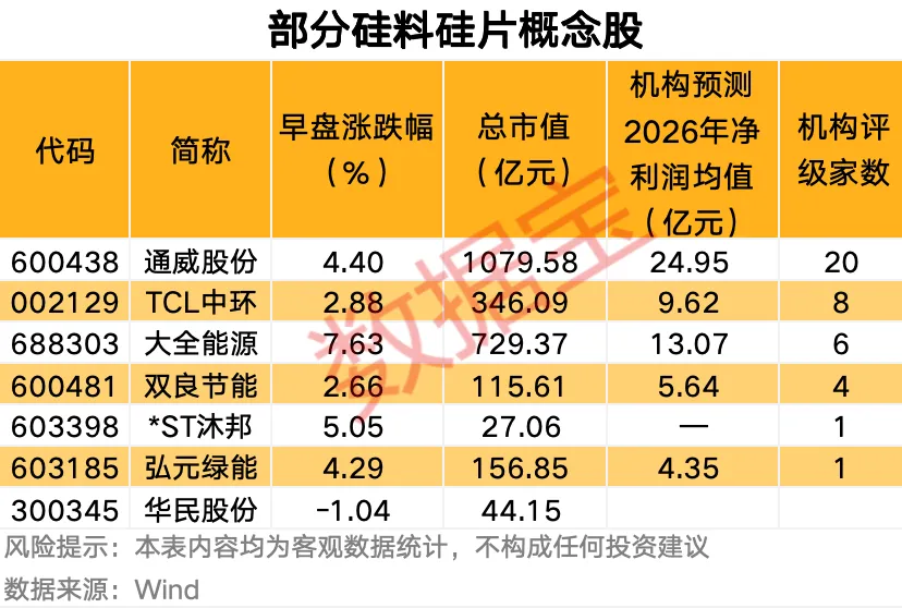 多晶硅期货早盘走高,硅料硅片概念股受带动