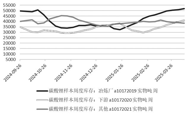 下游需求方面,3月碳酸锂需求量增长,4月预计继续增长。磷酸铁锂、三元材料产量预计增加,但旺季需求表现缺乏亮眼驱动因素。下游企业观望心态强烈,现货采购集中在价格较低的老货资源。关税政策冲击后,储能订单受影响,电芯厂开工率环比下降。库存压力大,全产业链库存水平持续上升,下游累库情况或透支后续需求空间。