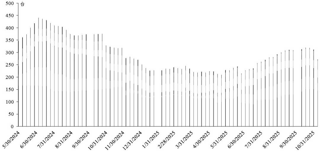 与西南产区相反,西北地区硅炉开工率有所回升,增减相抵后,工业硅供给端暂无明显缺口。新疆某大厂在9—10月陆续放量,叠加个别小厂提产,地区开工率整体有所回升。内蒙古、甘肃及宁夏地区开工率亦有所回升,西北地区产量整体呈现增加趋势。从地区占比看,新疆地区产量占全国总产量的52%,内蒙古、甘肃、宁夏地区产量合计占全国总产量的28%,四川、云南地区产量合计占全国总产量的17%,工业硅产量供给已转至西北地区。预计11月全国工业硅总产量将降至40万吨以内,环比降幅为12%,与往年同期相比基本持平。
