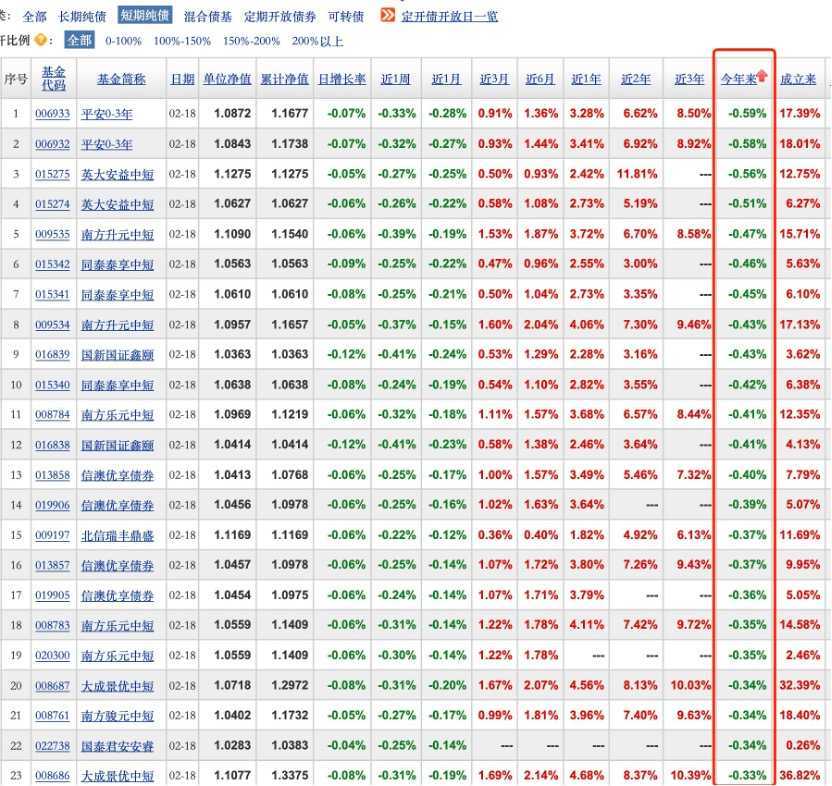 截至2月18日,已有222只短期纯债基金年内收益率转负,其中超过50只基金跌幅超过0.2%。