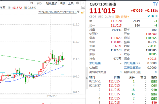行情数据显示,近期美国三大股指均出现大幅下跌,纳斯达克指数自2月下旬以来已累计跌超13%。在此背景下,美债近期表现相对强势,2年期、5年期、10年期美国国债期货均有所上涨,展现出其作为避险资产的魅力。
