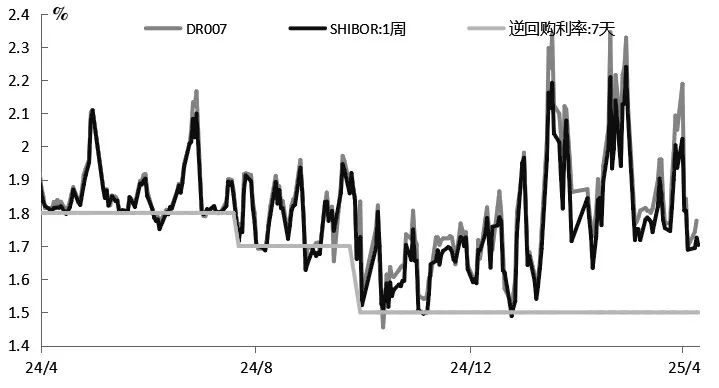 在此期间,央行加大公开市场操作力度,阶段性转向净投放。例如,3月25日,央行开展4500亿元MLF操作,对冲当月到期的3870亿元后,实现MLF净投放630亿元,这是自2024年7月以来首次净投放。同时,央行从3月起调整MLF操作为多重价位中标,旨在降低银行负债成本,缓解净息差压力。此外,为保持银行体系流动性充裕,2025年3月央行还开展了8000亿元买断式逆回购操作,推动短端利率下行。