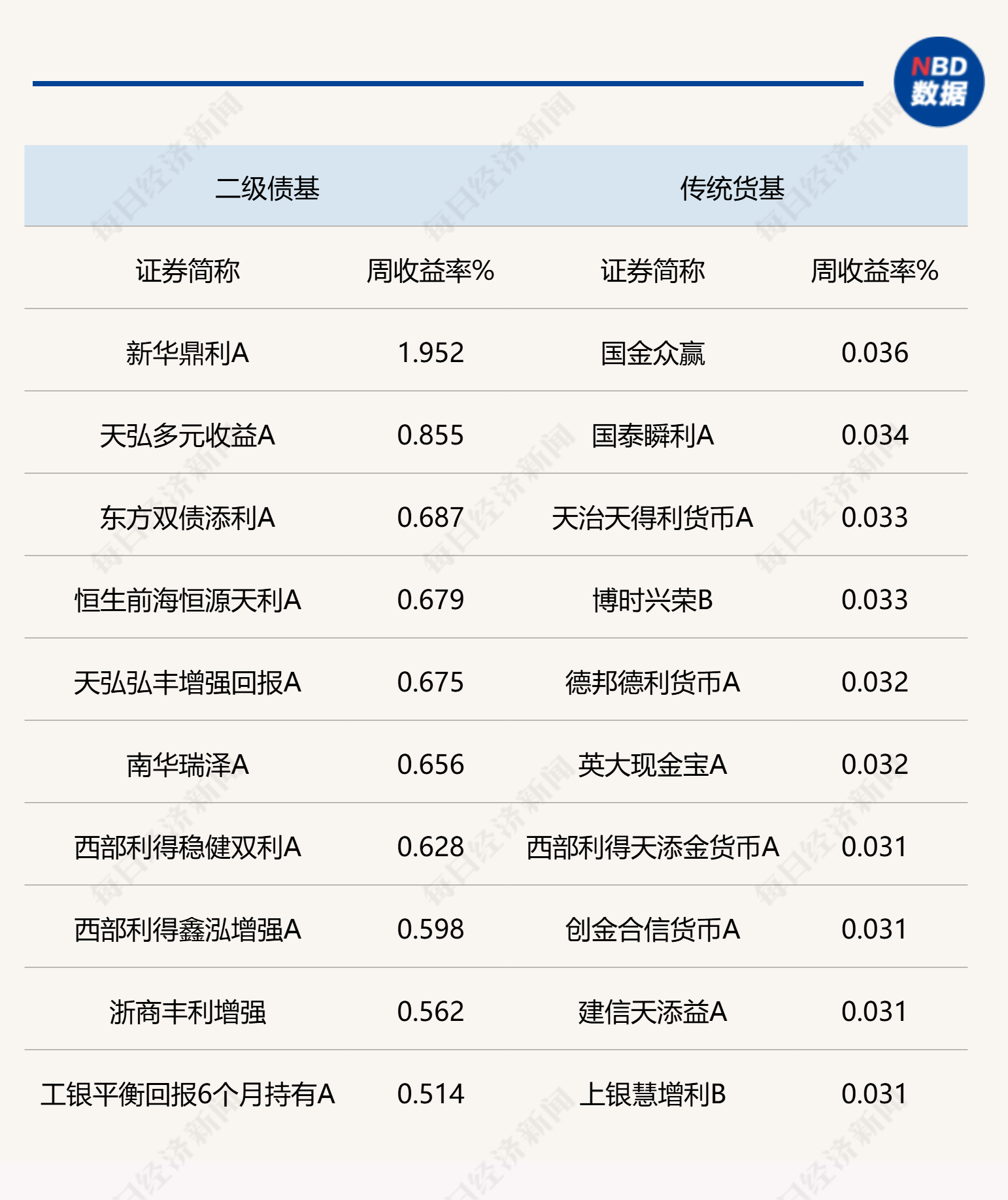说明:上周各类型债券型基金头部业绩产品统计来源:Wind
