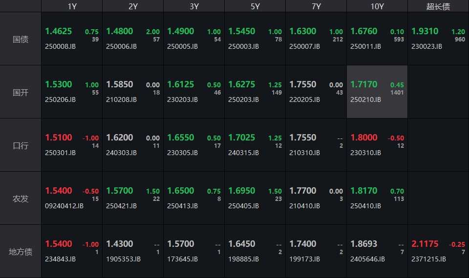 截至下午16:30,关键国债收益率有所上行,10年期国债活跃券收益率上行0.1bp至1.676%,显示出市场对经济前景的微妙态度。同时,公开市场操作方面,央行通过逆回购操作净回笼资金3755亿元。