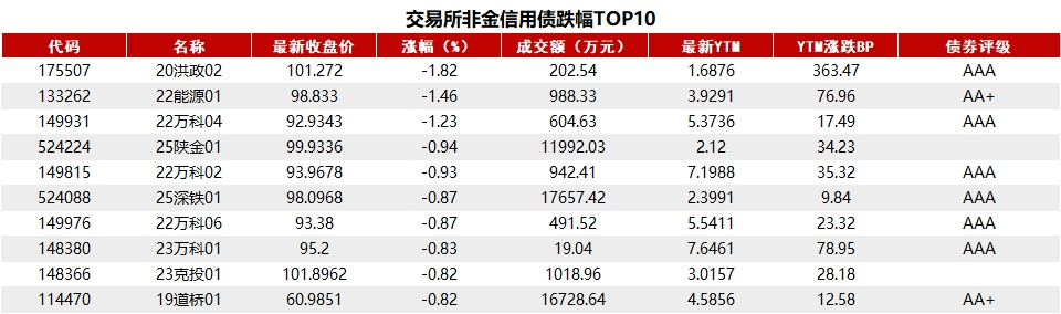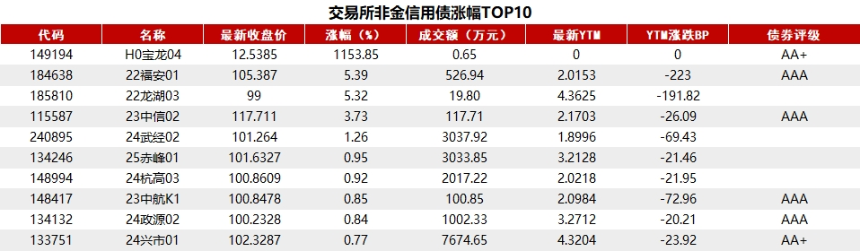 信用债方面,据Choice数据统计,今日交易所市场非金信用债涨跌互现,部分债券价格波动较大。