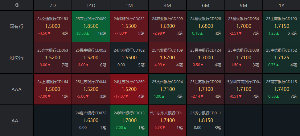存单方面,今日国股存单需求较好,但不同期限品种利率走势分化。