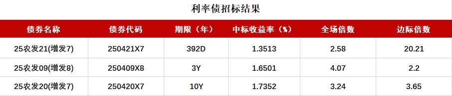 银行间主要利率债收益率全线下行,截至下午16:35,10年期国债活跃券250011收益率下行0.55bp报1.6365%,30年期国债活跃券2500002收益率下行0.65bp报1.8435%,10年期国开活跃券250210收益率下行0.7bp报1.7105%。