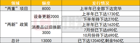 公开资料显示,2025年超长期特别国债计划发行规模为1.3万亿元,较2024年增加3000亿元,期限涵盖20年、30年及50年,其中 8000 亿元用于支持 “两重” 项目,5000亿元用于实施 “两新” 政策,包括3000亿元支持消费品以旧换新,2000亿元支持设备更新。