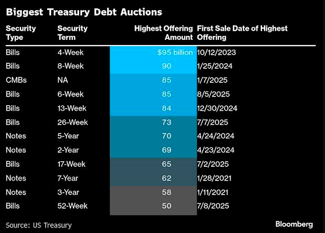 美国国债拍卖规模再创新高,短期国库券成焦点