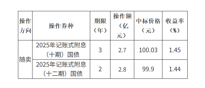 上证报中国证券网讯据财政部8月19日消息,依据国债做市支持操作相关规定,财政部于2025年8月19日顺利开展了国债做市支持操作。此次操作涉及的券种为2025年记账式附息(十期)国债以及2025年记账式附息(十二期)国债,操作额度分别达到了2.7亿元和2.8亿元,期限设定为3年和2年。国债做市支持操作对于维护国债市场的稳定、提升市场流动性具有关键作用,它有助于增强市场的定价效率,为投资者提供更为准确的价格信号。