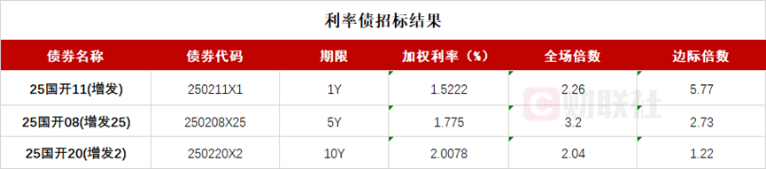 一级市场方面,进出口行1年、3年期金融债中标收益率分别为1.3556%、1.7377%,全场倍数分别为2.21、1.99,边际倍数分别为1.53、2.71。国开行3年、7年期金融债中标收益率分别为1.79%、1.8627%,全场倍数分别为2.47、3.52,边际倍数分别为2.57、1.08。财政部长蓝佛安向十四届全国人大常委会第十七次会议作了《国务院关于今年以来预算执行情况的报告》,部署下一步财政重点工作,明确下一步要用好用足更加积极的财政政策。