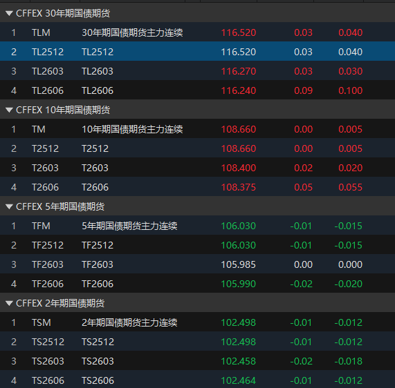 11月4日国债期货收盘涨跌互现,30年期主力合约涨0.03%,10年期持平,5年与2年期微跌,市场波动反映供需变化及预期调整。