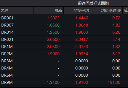 银行间回购利率方面,多数品种同样呈现上行趋势。