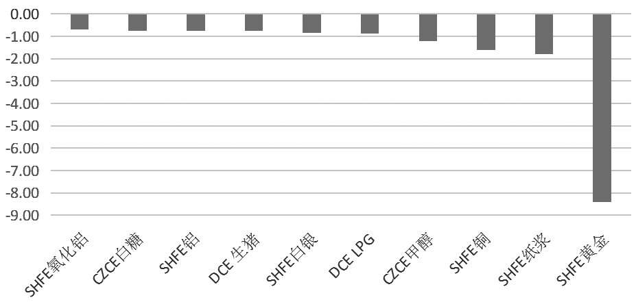 此图则揭示了商品期货资金流出前十名的品种及其金额(亿元)。