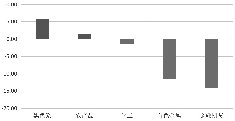 板块资金流入额(亿元)如图所示,黑色系和农产品板块表现突出。