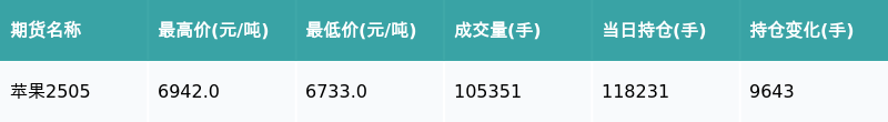 该数据反映了近期苹果期货市场的波动情况,为投资者提供了重要的参考信息。投资者需密切关注市场动态,以做出更为精准的投资决策。(文章来源:南方财经网)