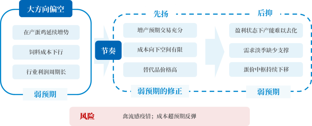 蛋鸡行业高利润、高补栏背景下,市场对增产预期一致,但对产能兑现时点和增量存在分歧。交易路径为弱预期-预期强化-预期修正-弱预期回归。四季度或不如预期悲观,弱现实落地需时间,后市交易聚焦预期差修正。