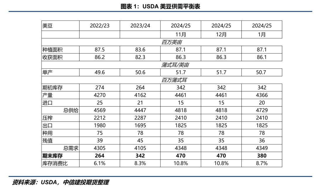1月USDA报告超预期下调美豆单产,引发市场快速拉升。后续交易将关注南美丰产兑现情况,阿根廷和巴西降雨形势及特朗普关税政策成为市场焦点。国内豆粕价格受多重因素影响,预计呈现宽幅震荡。