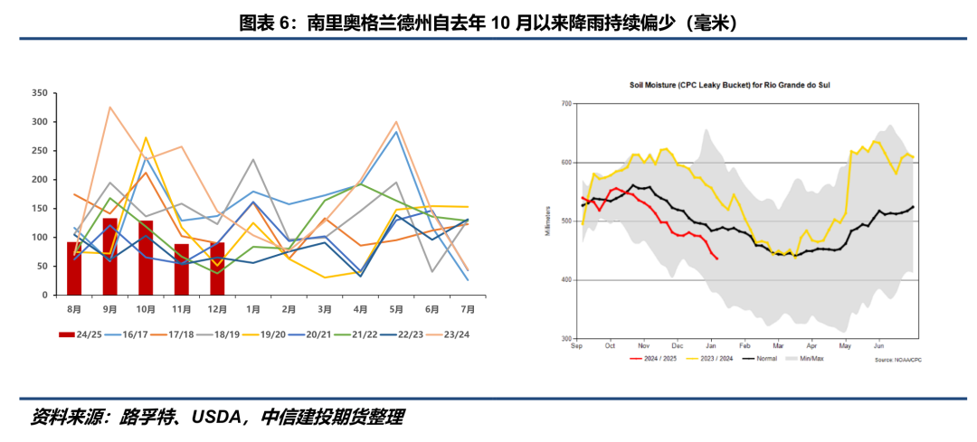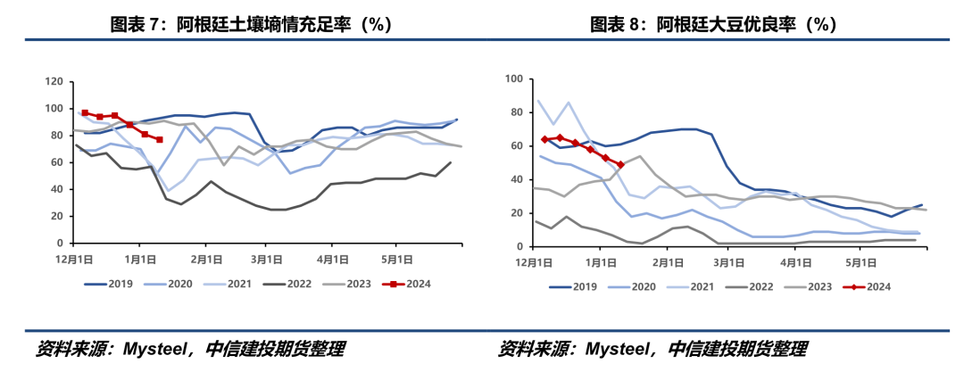 1月USDA报告超预期下调美豆单产至50.7蒲/英亩,导致产量和期末库存分别下调至43.66亿蒲和3.8亿蒲,引发隔夜美盘快速拉升。市场认为此报告标志着美豆本年度供应端利多出尽,后续交易将以新的美豆中枢为基准,重点关注南美丰产兑现情况。未来几周阿根廷大豆进入关键生长期,降雨形势将继续扰动CBOT大豆。