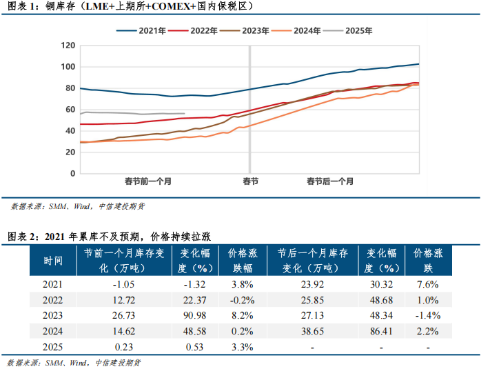 在中国,春节法定假期通常持续一周左右,期间上游生产企业保持正常运营,而下游加工企业则普遍停工放假,节后才逐步恢复生产。这一特定的假期安排导致春节期间工业品板块出现供需错配,进而引发季节性的库存积累。值得注意的是,每年春节前后的库存积累与消化时间节点存在差异,这反映出不同品种间的供需结构分化,同时也容易引发价格的较大波动。