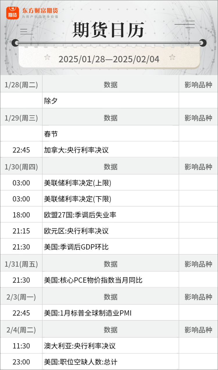 春节期间,全球多个国家和地区将发布一系列重要的经济数据,如美联储利率决定和美国GDP数据,定于1月30日揭晓。这些数据作为经济健康与否的晴雨表,将对期货市场产生深远的影响。投资者需密切关注,以便在新的一年中更好地把握市场脉搏。