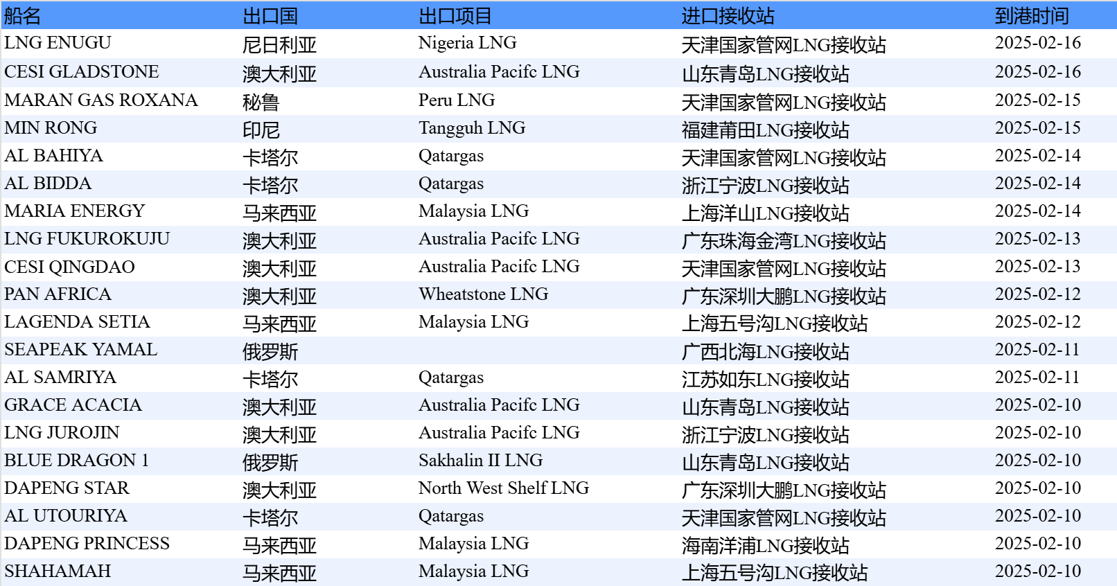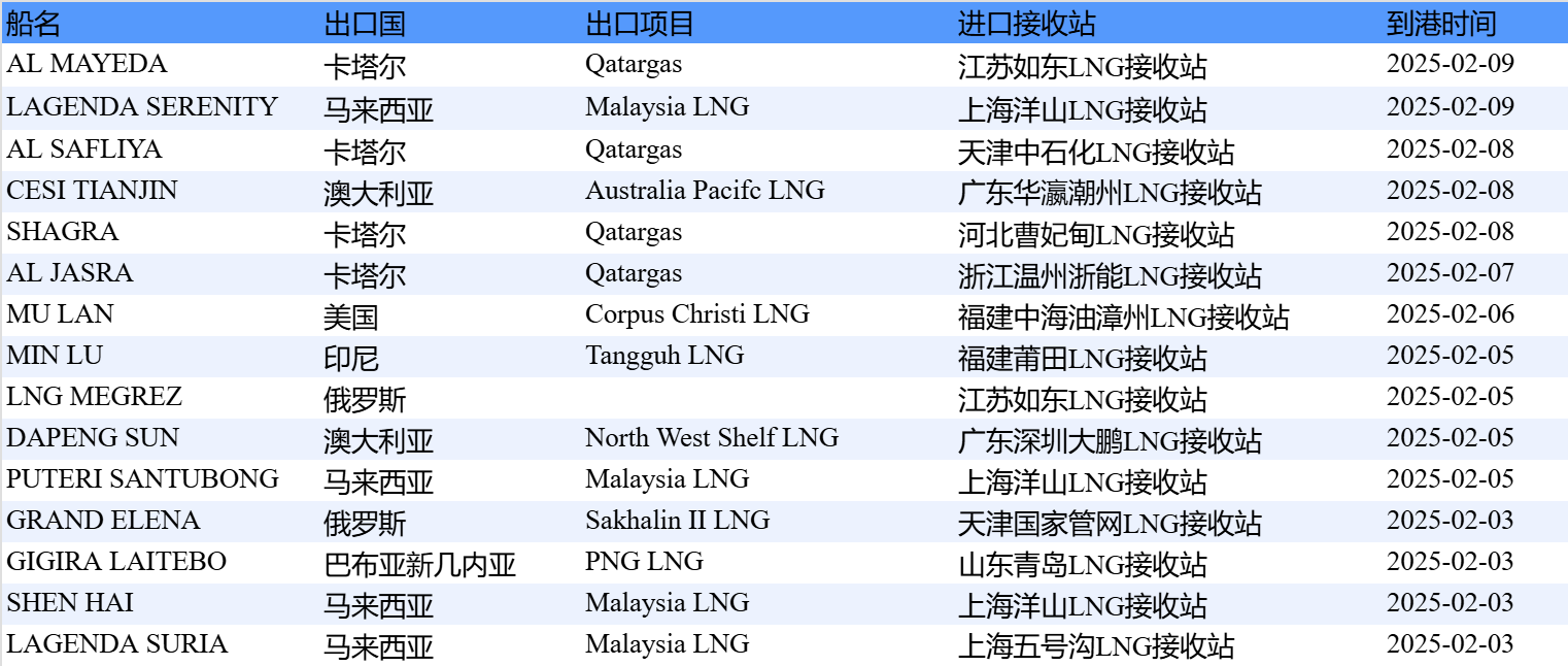 展望未来,根据E-Gas系统的LNG船期预测数据,2月10日至2月16日当周,中国预计将通过沿海LNG接收站进口LNG达到20船,预计进口量将攀升至约137万吨,显示出中国LNG进口需求的持续增长态势。
