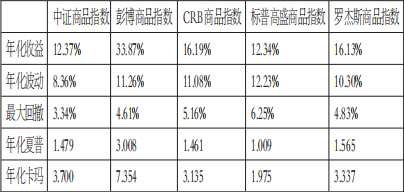 中证商品指数长期表现稳健,风险控制优于海外同类指数,既保持稳健走势,又能反映国内宏观变化。