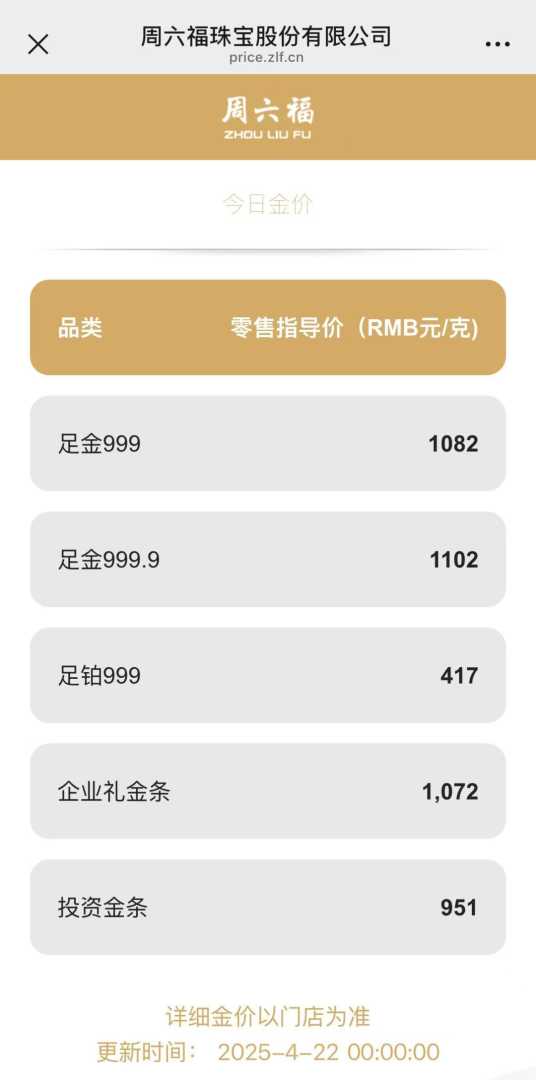 国际市场上,黄金价格也屡创新高。22日,国际黄金期货和现货价格分别突破每盎司3509.9美元和3500.12美元,年内涨幅已超越比特币。国内金饰价格同样刷新新高,周六福足金999.9饰品标价已达1102元/克,周大福、六福珠宝等品牌价格也逼近1082元/克。