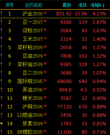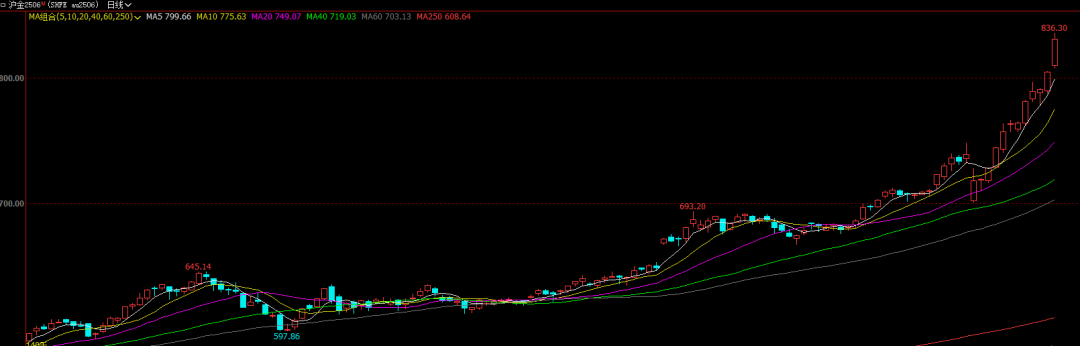 今日,国内商品期货市场走势分化。黑色系普遍大跌,农产品表现分化,玉米、豆类价格坚挺,原木、红枣等大幅下跌。值得注意的是,黄金期货价格再创新高,主力合约AU2506盘中突破830元/克。自年初以来,金价累计涨幅已超30%,吸引全球投资者目光,A股黄金股及黄金ETF市场资金持续涌入。