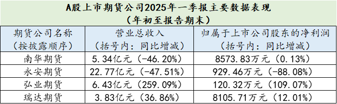 A股上市期货公司均已公布2025年一季度“成绩单”。