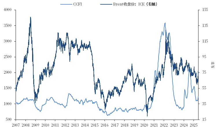 集运:小概率/低赔率。中东/印巴地区集装箱进出口量增速高,但在全球集运贸易中影响偏弱。从运力角度看,中东/印巴航线运力占比全球不高,且平均单艘船运力远不如亚欧和太平洋航线。因此,若伊朗关闭霍尔木兹海峡,集运市场影响将远不如油运市场。油价上行对运费的影响在不断削弱,此事件对全球及中东/印巴地区集运运费影响有限。