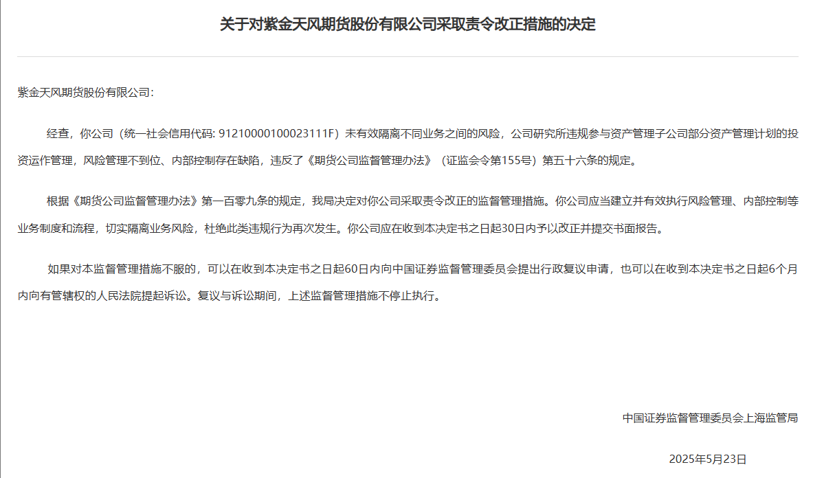 2025年上半年期货业监管趋严,全国各地证监局向期货公司开出55张罚单,数量同比增加超一倍。资管业务风险隔离问题成新焦点,部分头部券商旗下期货公司也遭处罚。